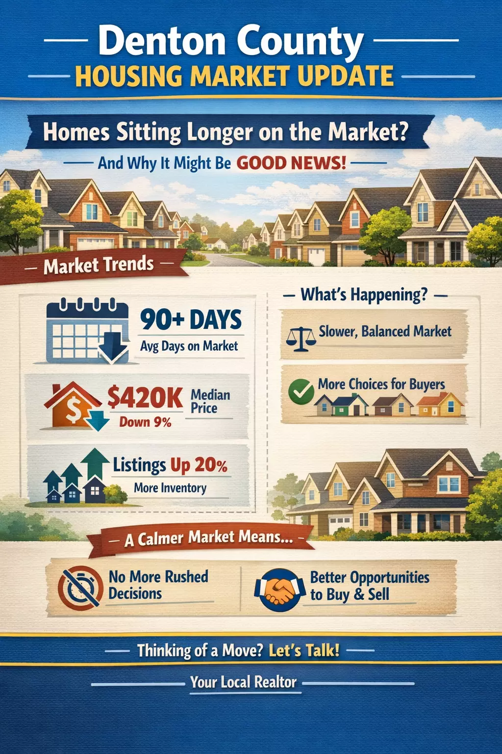 If you’ve been watching the Denton County housing market lately, you’ve probably noticed something that feels a little unfamiliar: homes are taking longer to sell.